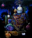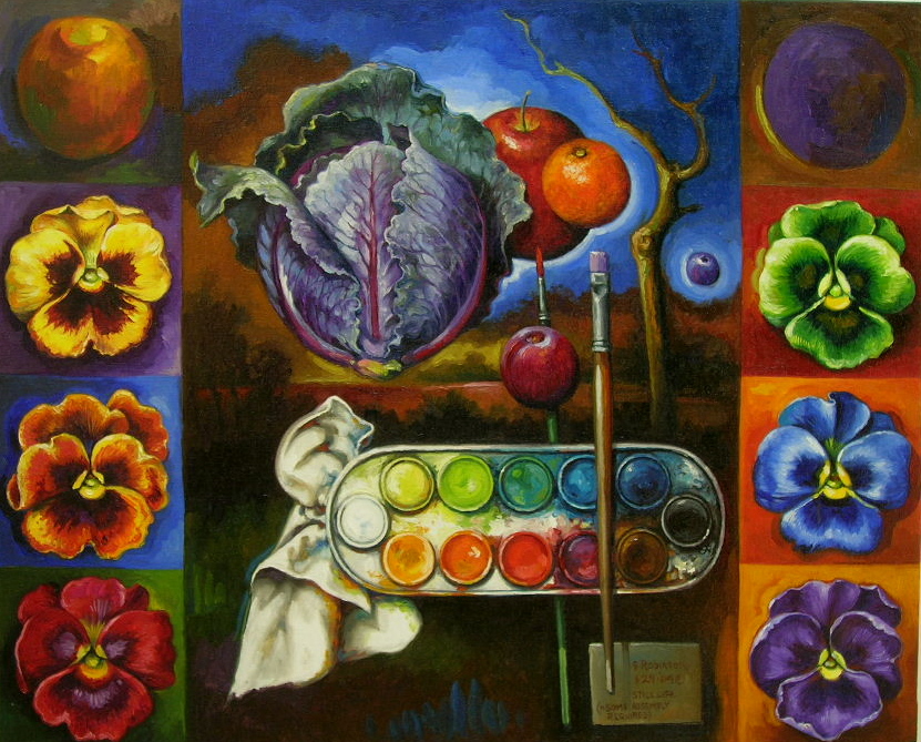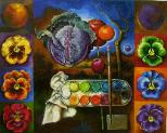 | Winsor Newton: Three Tubes Of Paint (after a painting by g. g. Robinson) When the cap is off, Beware: Each thin metal tube of possibility leaks visions. The mind's eye conjures them up, always wishing to be pleased. Out of the Prussian Blue tube a monochrome face tendrils free, floating in a deep fog, leaving the casing flatter, bent, vacated at the bottom curled in on itself, emptily. Some of the Alizarin Crimson escapes like visible ammonia. Drifting upwards in a red cloud, it crystallizes. A rose without thorns or scent sits buoyed above its larval stage. This mundane metamorphosis is as ordinary as the sun and stars. Though painting is still slight of hand, Once out, like rabbits or doves, the images fly away from the magician and never return. K. Winfield Teel 7-10-86 |